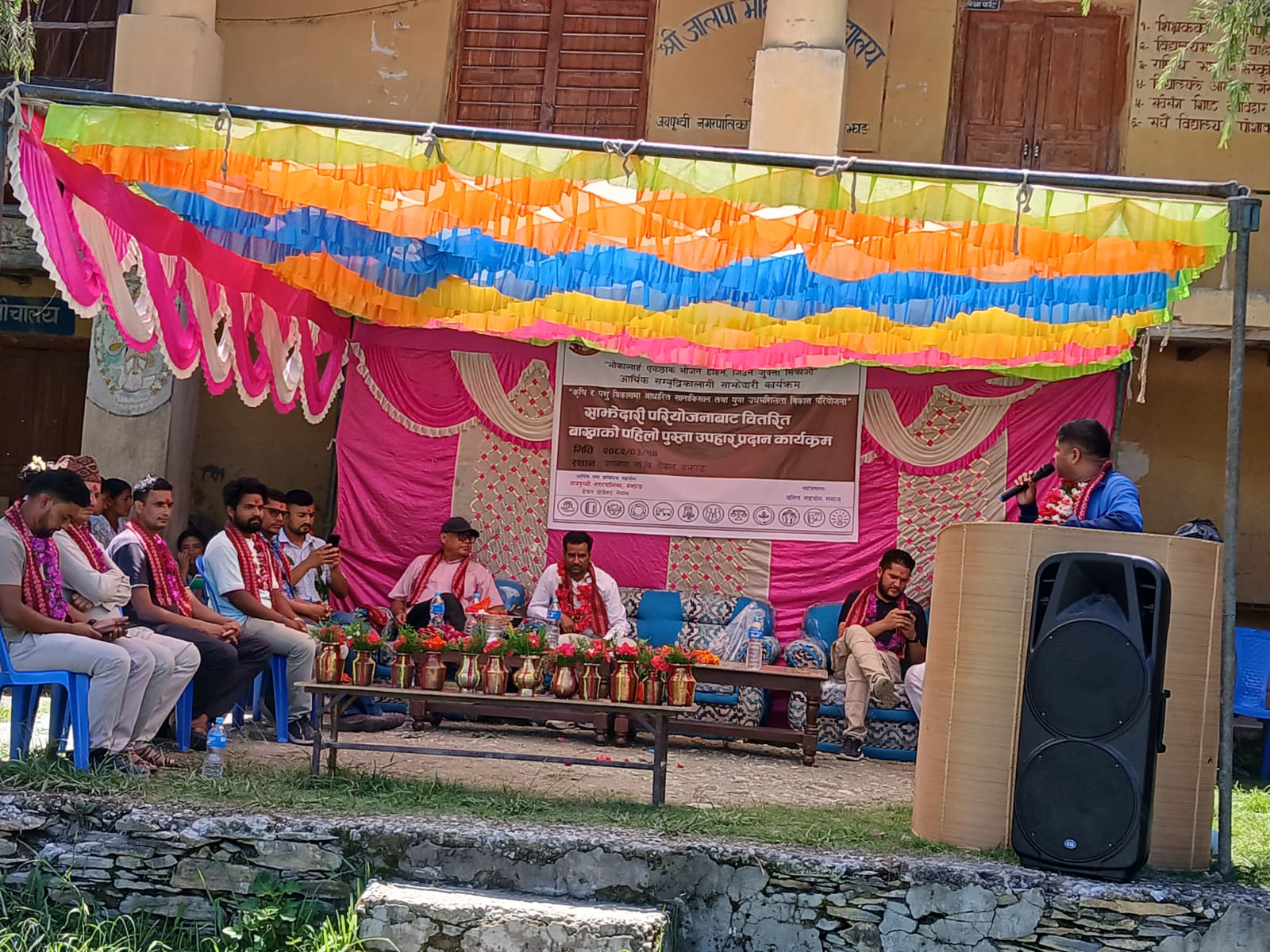 कृषि र पशु विकासमा आधारित साना किसान तथा युवा उद्यमशीलता विकास परियोजना” अन्तर्गत बाख्राको पहिलो पुस्ता हस्तान्तरण कार्यक्रम भव्य रूपमा सम्पन्न